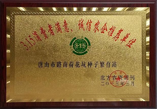 消費者信得過單位3.15消費者滿意、誠信農企推薦單位